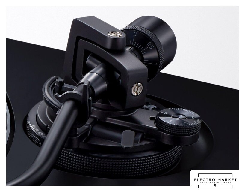 ременной привод, 33 1/3, 45 об/мин, электронное переключение скоростей, тонарм поворотный (прямой), картридж с подвижным магнитом (MM), цвет черный