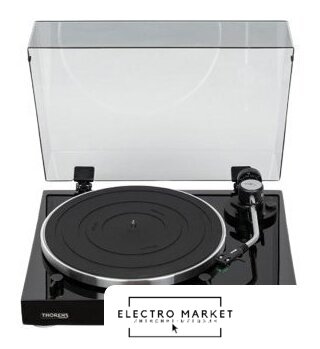 ременной привод, 33 1/3, 45 об/мин, электронное переключение скоростей, тонарм поворотный (прямой), картридж с подвижным магнитом (MM), цвет черный