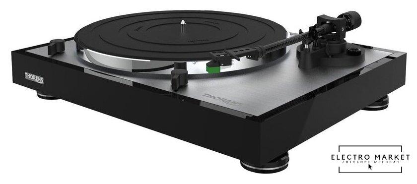 ременной привод, 33 1/3, 45 об/мин, электронное переключение скоростей, встроенный фонокорректор, тонарм поворотный (прямой), картридж с подвижным магнитом (MM), цвет черный