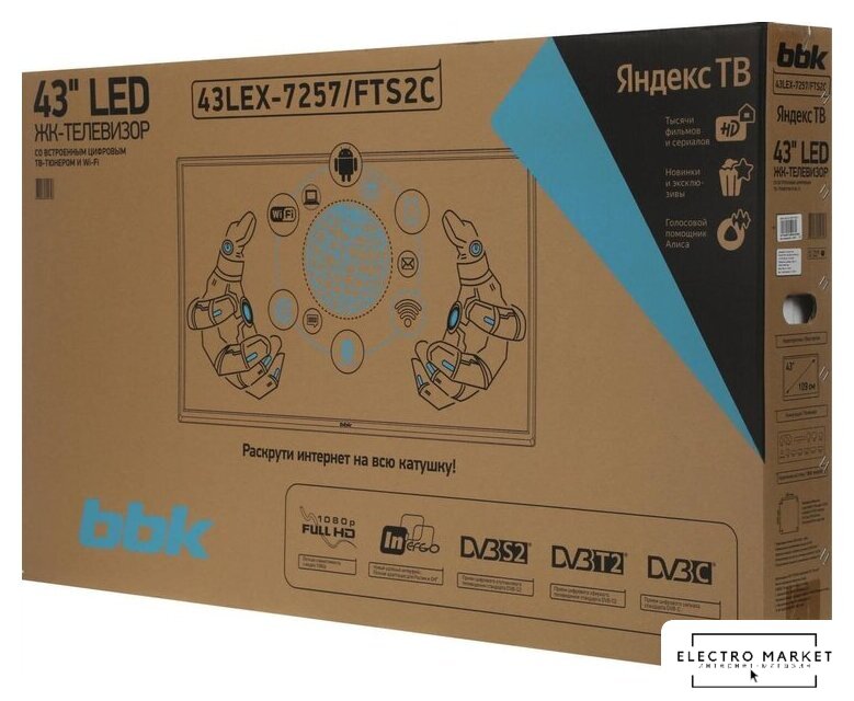 43" 1920x1080 (Full HD), частота матрицы 60 Гц, Smart TV (Android), Wi-Fi