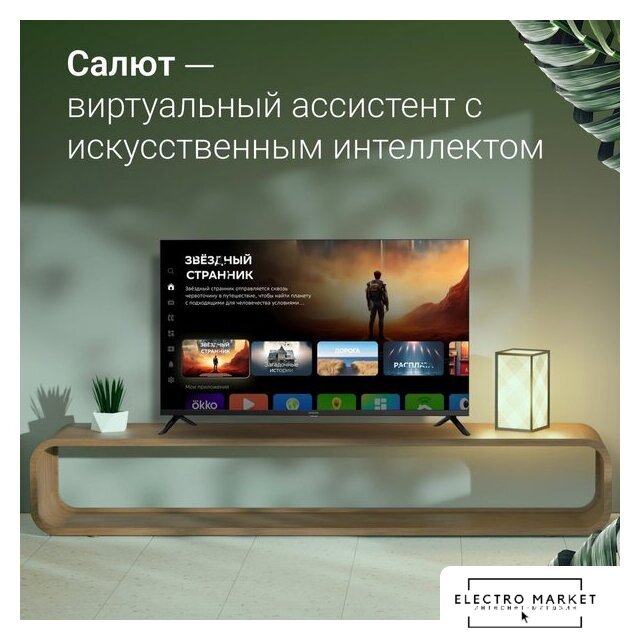 43" 3840x2160 (4K UHD), частота матрицы 60 Гц, Smart TV (Яндекс.ТВ), Wi-Fi, смарт пульт