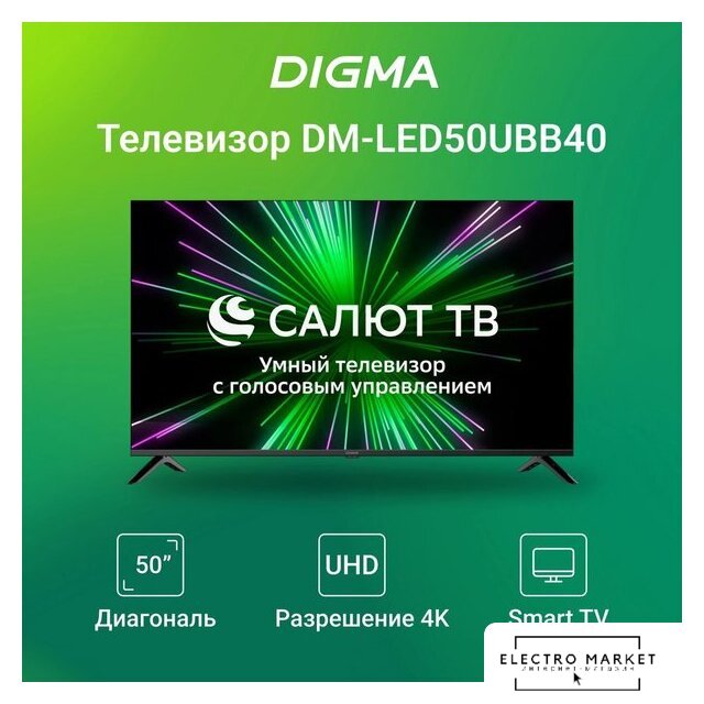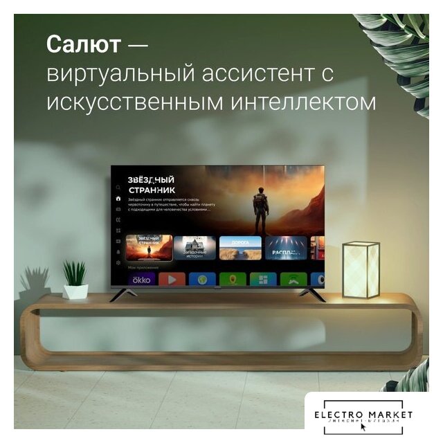 55" 3840x2160 (4K UHD), матрица TN+Film, частота матрицы 60 Гц, Smart TV (Салют ТВ), Wi-Fi, смарт пульт