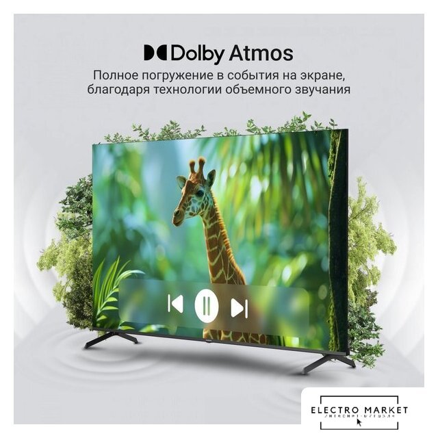 75" 3840x2160 (4K UHD), матрица VA, частота матрицы 60 Гц, Smart TV (Салют ТВ), Wi-Fi, смарт пульт