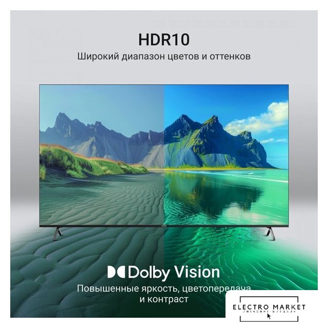 55" 3840x2160 (4K UHD), матрица VA, частота матрицы 144 Гц, Smart TV (Vidaa), HDR10, HDR10+, Dolby Vision, Dolby Vision IQ, HLG, DTS:X, Dolby Atmos, AirPlay, Wi-Fi, смарт пульт