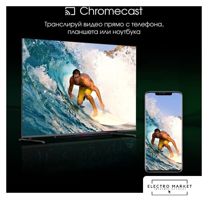 55" 3840x2160 (4K UHD), частота матрицы 144 Гц, Smart TV (Google TV), HDR10, HDR10+, Dolby Vision, Dolby Vision IQ, HLG, Dolby Atmos, AirPlay, Wi-Fi, смарт пульт