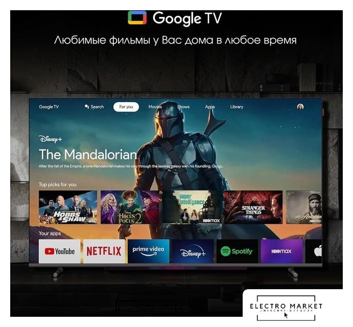 75" 3840x2160 (4K UHD), частота матрицы 60 Гц, Smart TV (Google TV), HDR10, Dolby Vision, Dolby Atmos, AirPlay, Wi-Fi