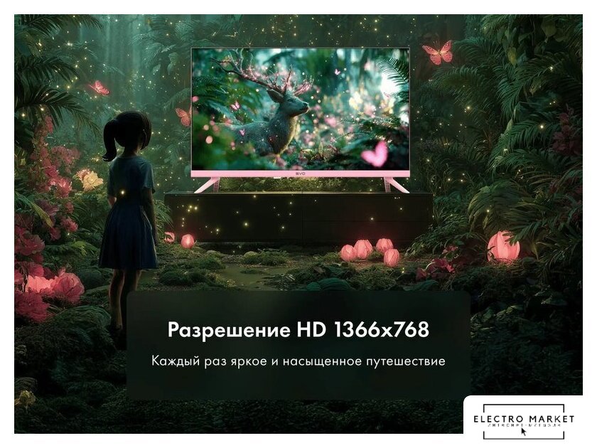 32" 1366x768 (HD), матрица VA, частота матрицы 60 Гц, Wi-Fi