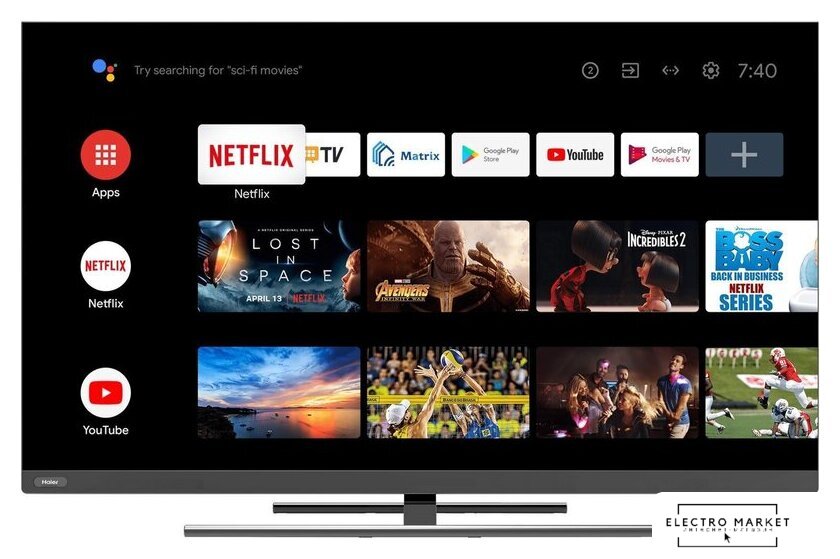 65" 3840x2160 (4K UHD), частота матрицы 60 Гц, Smart TV (Android), Wi-Fi
