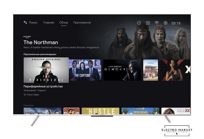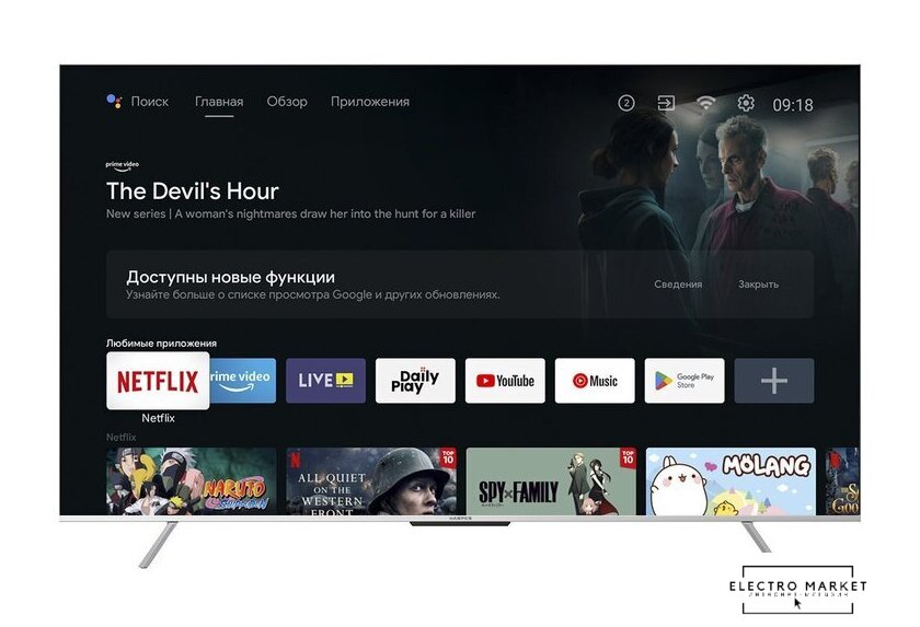 55" 3840x2160 (4K UHD), матрица VA, частота матрицы 60 Гц, Smart TV (Яндекс.ТВ), HDR, Wi-Fi