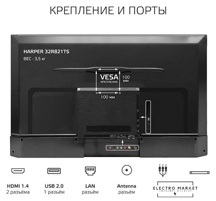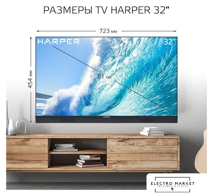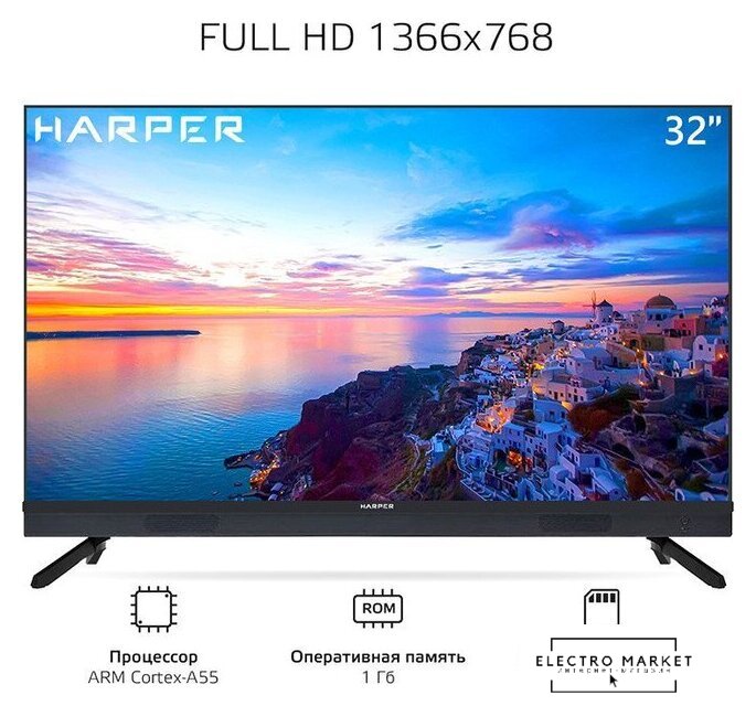 32" 1366x768 (HD), матрица VA, частота матрицы 60 Гц, Wi-Fi, смарт пульт