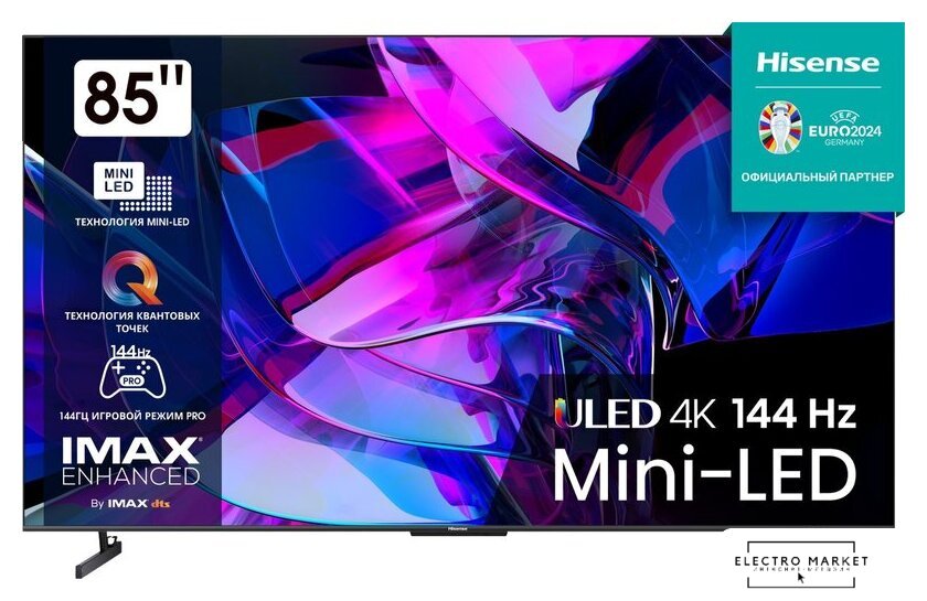 85" 3840x2160 (4K UHD), частота матрицы 120 Гц, Smart TV (Android TV), HDR10, Dolby Vision, HLG, DTS, Dolby Atmos, AirPlay, Wi-Fi, смарт пульт