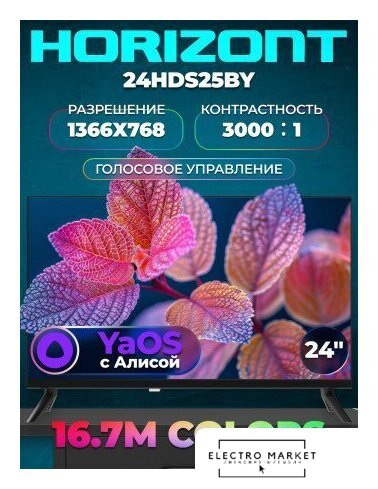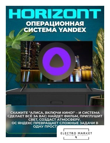 32" 1366x768 (HD), частота матрицы 60 Гц, Smart TV (Яндекс.ТВ), Wi-Fi, смарт пульт