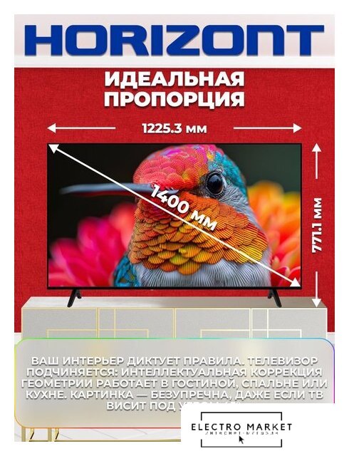 58" 3840x2160 (4K UHD), частота матрицы 60 Гц, Smart TV (Яндекс.ТВ), Wi-Fi, смарт пульт