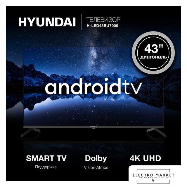 43" 3840x2160 (4K UHD), матрица VA, частота матрицы 60 Гц, Smart TV (Яндекс.ТВ), Wi-Fi, смарт пульт