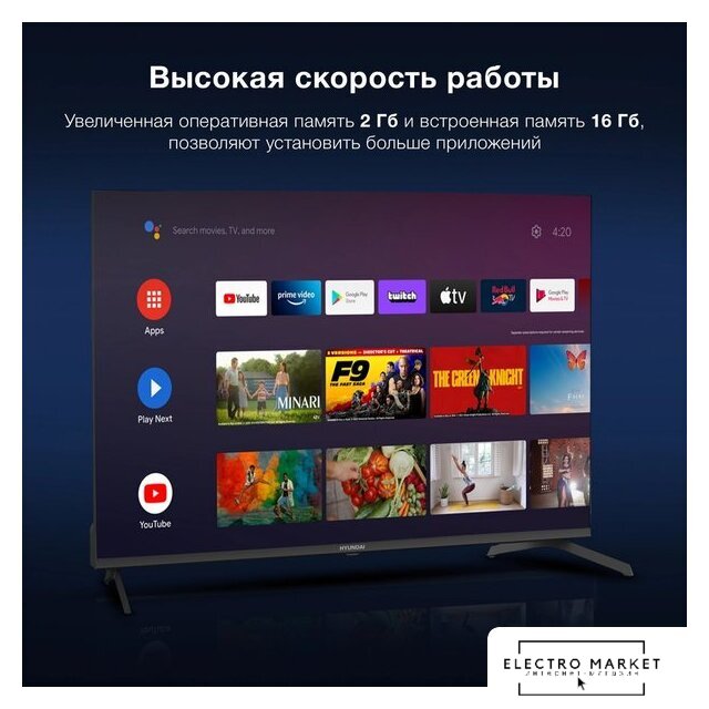 40" 1920x1080 (Full HD), матрица VA, частота матрицы 60 Гц, Smart TV (Android TV), HLG, Wi-Fi, смарт пульт