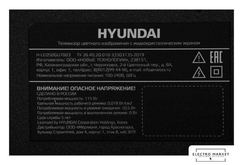 Изготовитель: Хёндэ Мотор Компани. 231, Янгяе-Дон, сеочо-ГУ, Сеул, Южная Корея