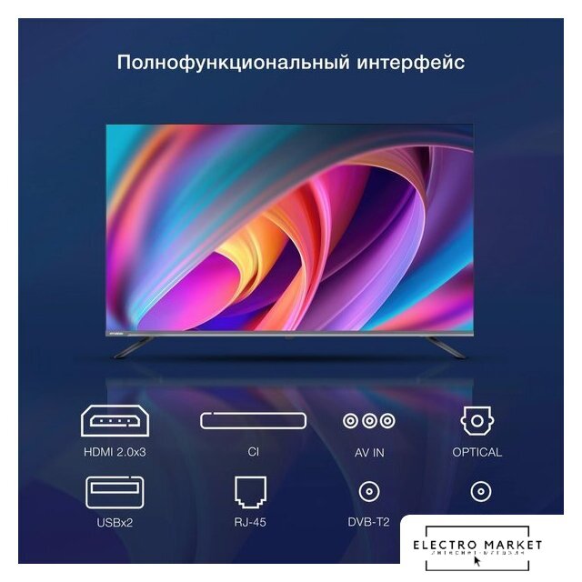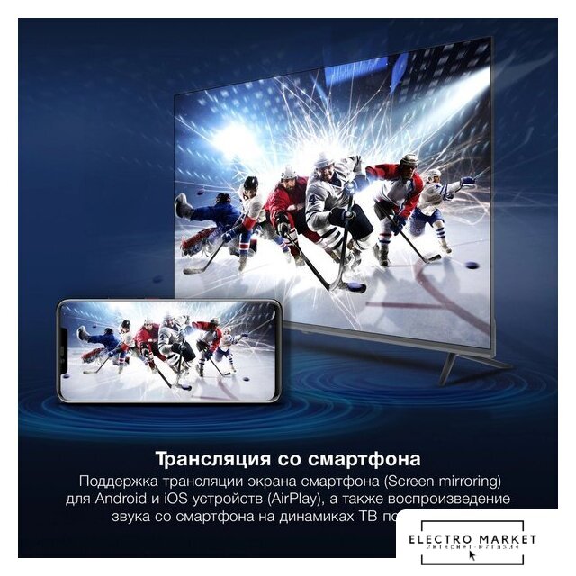 55" 3840x2160 (4K UHD), матрица VA, частота матрицы 60 Гц, Smart TV (Салют ТВ), AirPlay, Wi-Fi, смарт пульт