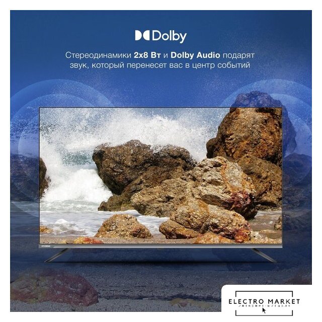 50" 3840x2160 (4K UHD), частота матрицы 60 Гц, Smart TV (Android TV), HDR10, HLG, DTS:HD, DTS:X, Wi-Fi, смарт пульт