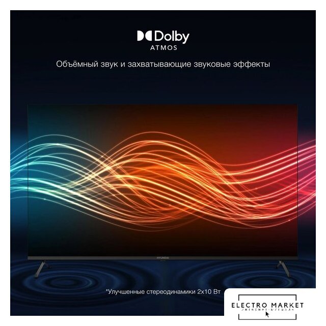 55" 3840x2160 (4K UHD), частота матрицы 60 Гц, HDR10, HDR10+, Dolby Vision, HLG, Dolby Atmos, Wi-Fi, смарт пульт