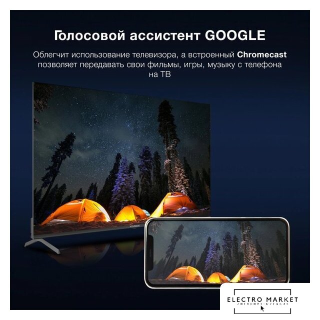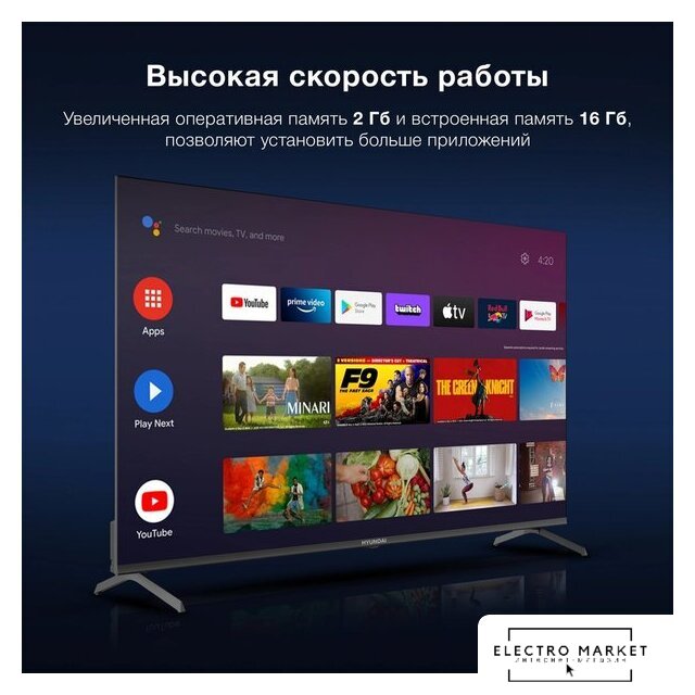 50" 3840x2160 (4K UHD), частота матрицы 60 Гц, Smart TV (Android TV), HDR10, Wi-Fi, смарт пульт