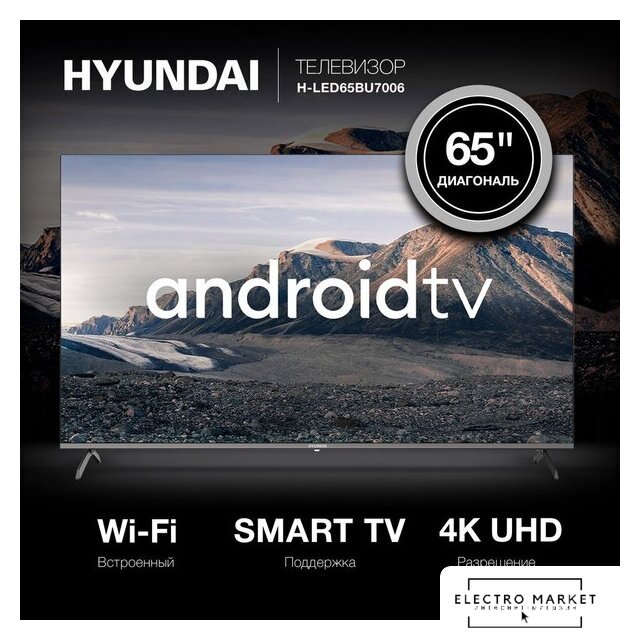 65" 3840x2160 (4K UHD), матрица VA, частота матрицы 60 Гц, Smart TV (Android TV), HDR10, Wi-Fi, смарт пульт