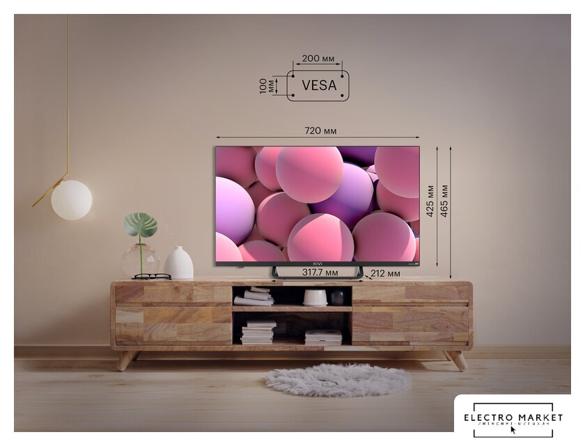 32" 1366x768 (HD), матрица VA, частота матрицы 60 Гц, Smart TV (Android TV), Wi-Fi