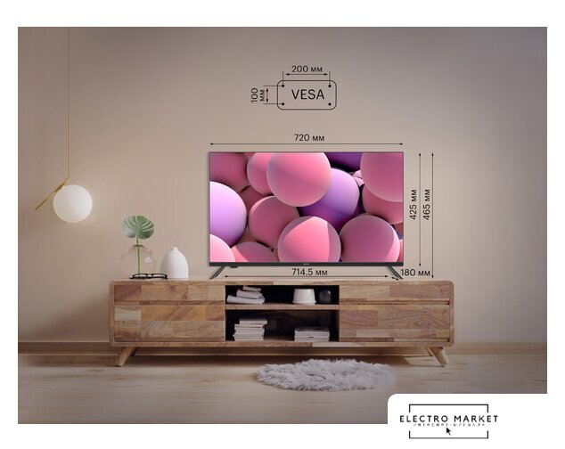 32" 1366x768 (HD), матрица TN+Film, частота матрицы 60 Гц, Smart TV (Яндекс.ТВ), Wi-Fi, смарт пульт