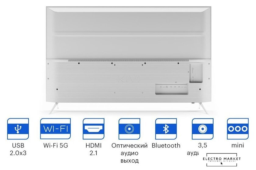| Пульт в комплекте | KIVI RC60 – серый с голосовым управлением и кнопками Netflix, YouTube |