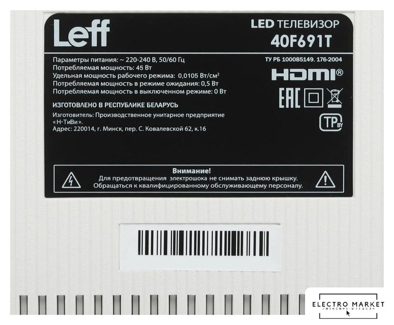 40" 1920x1080 (Full HD), матрица VA, частота матрицы 60 Гц, Smart TV (Android TV), HLG, Wi-Fi, смарт пульт