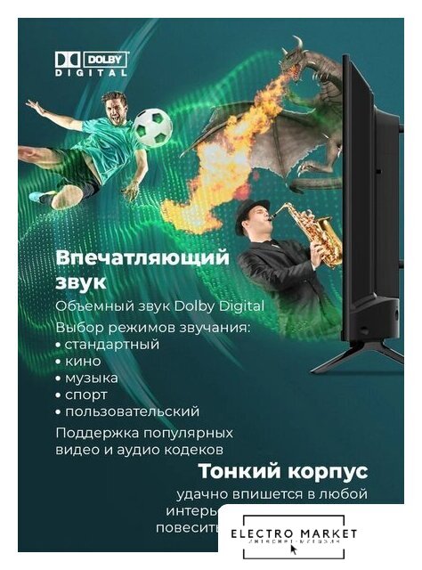 40" 1920x1080 (Full HD), матрица VA, частота матрицы 60 Гц, Smart TV (Яндекс.ТВ), Wi-Fi, смарт пульт