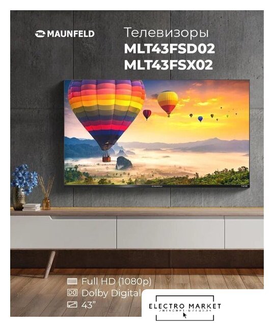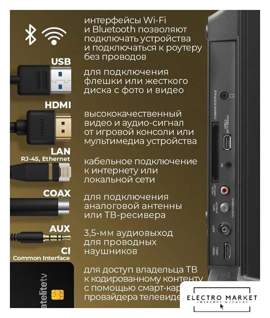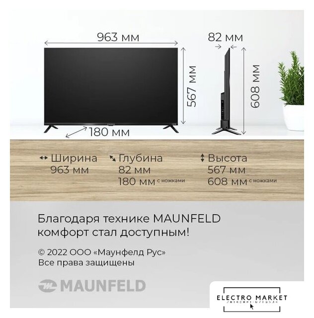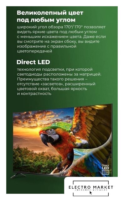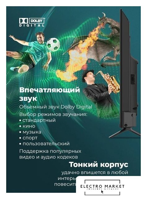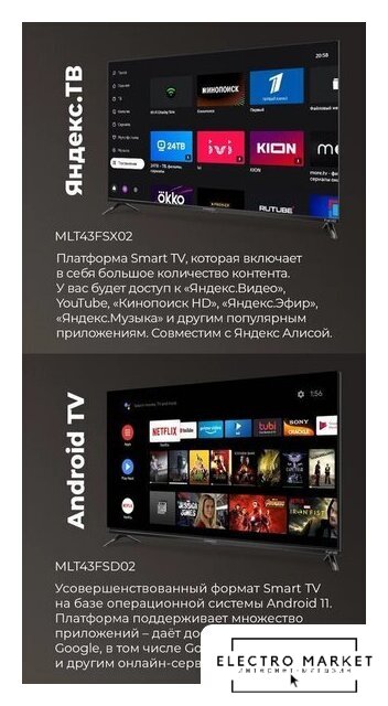 43" 3840x2160 (4K UHD), частота матрицы 60 Гц, Smart TV (Яндекс.ТВ), Wi-Fi