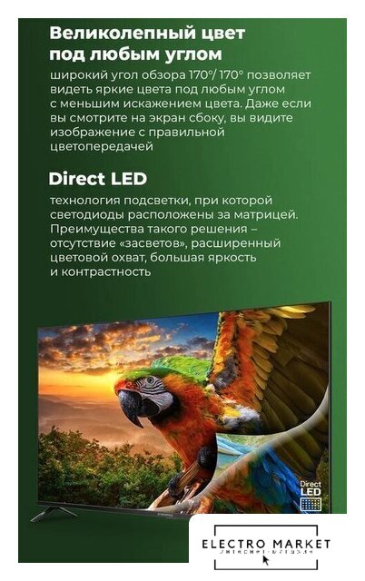 49.5" 3840x2160 (4K UHD), матрица TN+Film, частота матрицы 60 Гц, Smart TV (Салют ТВ), Wi-Fi, смарт пульт