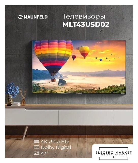 50" 3840x2160 (4K UHD), частота матрицы 60 Гц, Wi-Fi