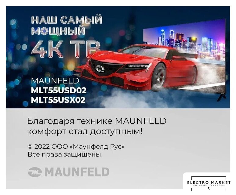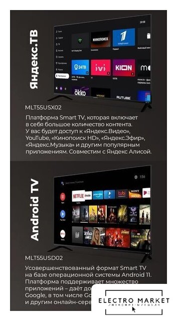 55" 3840x2160 (4K UHD), матрица VA, частота матрицы 60 Гц, Smart TV (Google TV), HDR10+, HLG, Dolby Atmos, Wi-Fi, смарт пульт