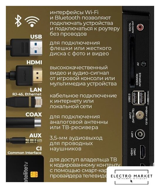 | ТВ-тюнер | Аналоговый, DVB-C, DVB-T, DVB-T2, DVB-S/S2 |