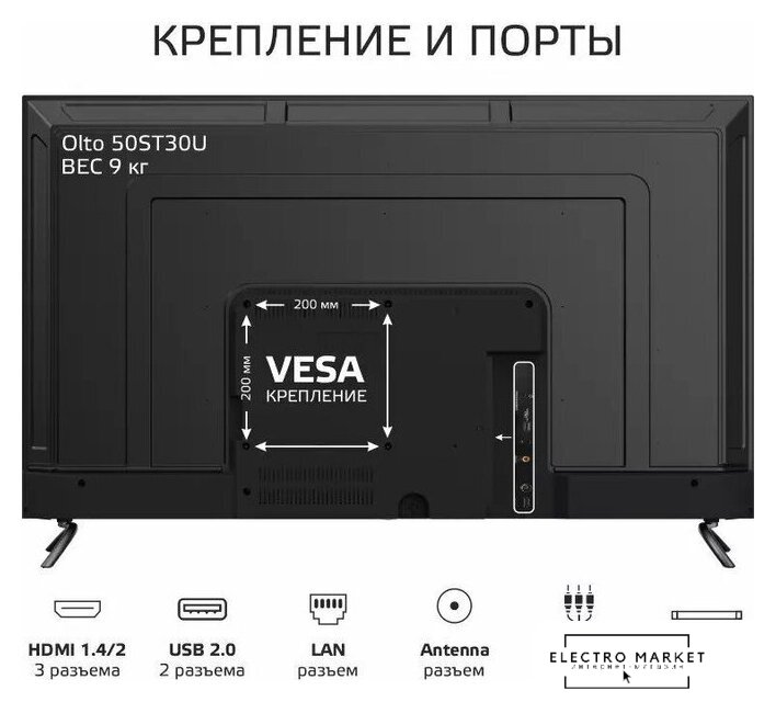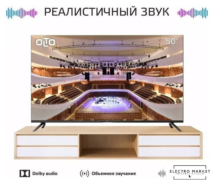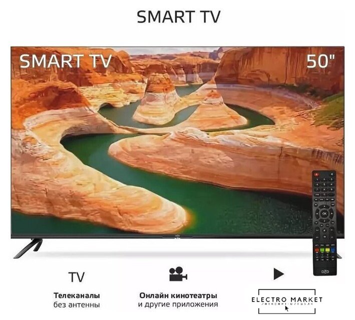 50" 3840x2160 (4K UHD), матрица VA, частота матрицы 60 Гц, Smart TV (Яндекс.ТВ), HDR10, Wi-Fi, смарт пульт
