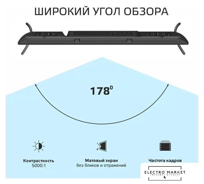 43" 3840x2160 (4K UHD), матрица VA, частота матрицы 60 Гц, Smart TV (Яндекс.ТВ), HDR10, Wi-Fi, смарт пульт