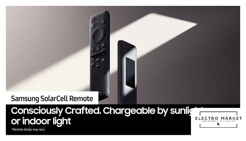 Пульт в комплекте | Samsung TM2360E – с голосовым управлением, на солнечных батарее, кнопками Netflix, Prime Video, Disney |