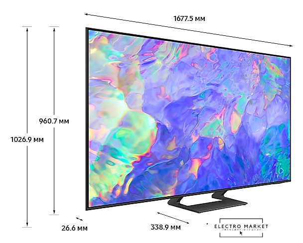 75" 3840x2160 (4K UHD), матрица VA, частота матрицы 60 Гц, Smart TV (Samsung Tizen), HDR10, HDR10+, HLG, AirPlay, Wi-Fi, смарт пульт