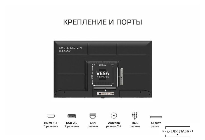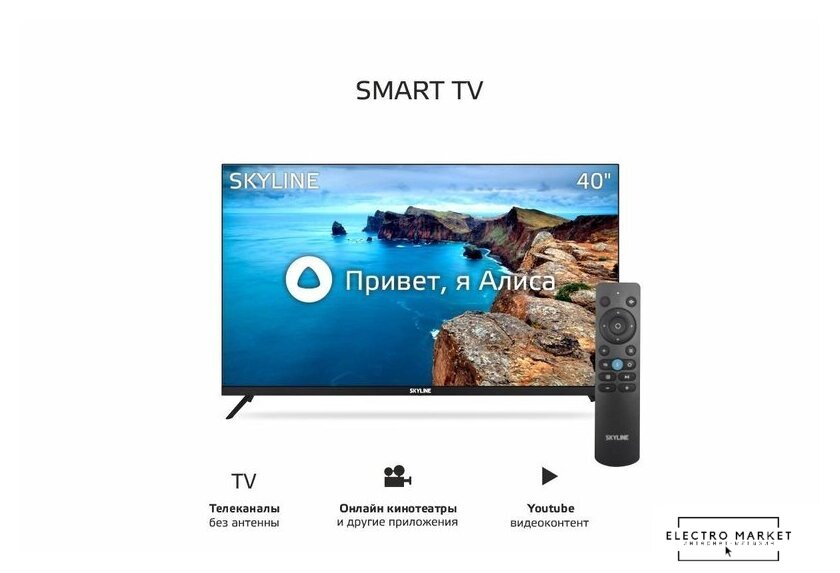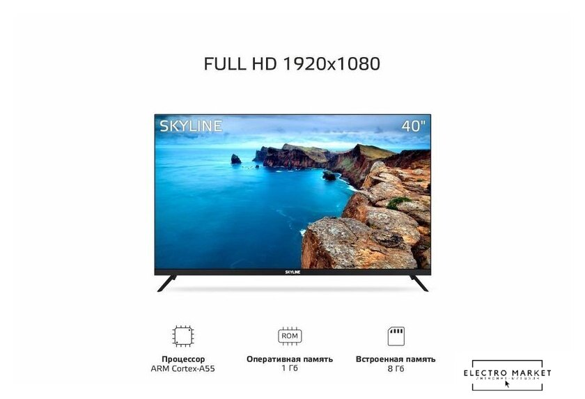 40" 1920x1080 (Full HD), частота матрицы 60 Гц, Smart TV (Android), Wi-Fi