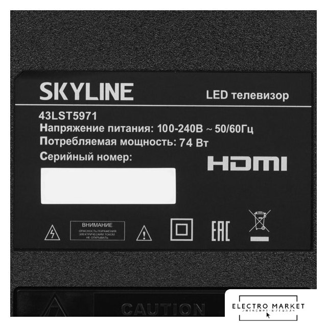43" 3840x2160 (4K UHD), матрица VA, частота матрицы 60 Гц, HDR10, Wi-Fi, смарт пульт