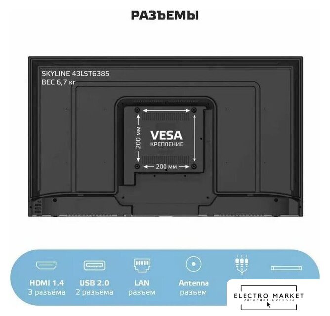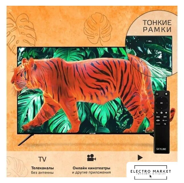 42.5" 3840x2160 (4K UHD), матрица TN+Film, частота матрицы 60 Гц, Smart TV (Wildred), Wi-Fi
