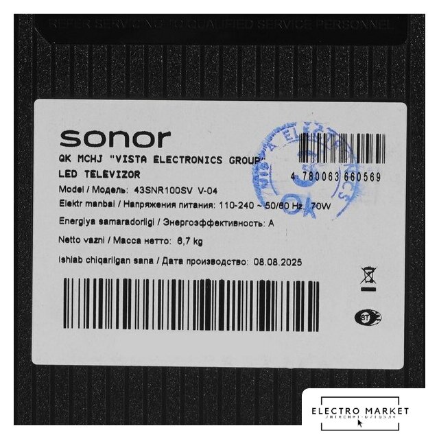 43" 1920x1080 (Full HD), матрица VA, частота матрицы 60 Гц, Smart TV (Салют ТВ), Wi-Fi, смарт пульт
