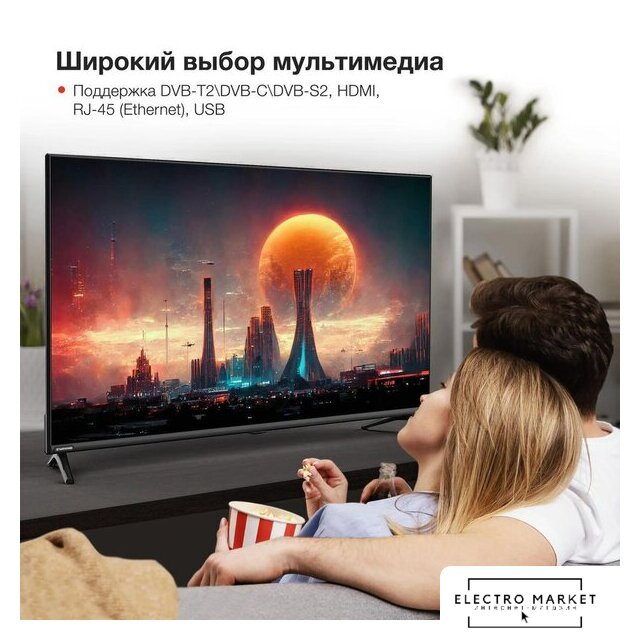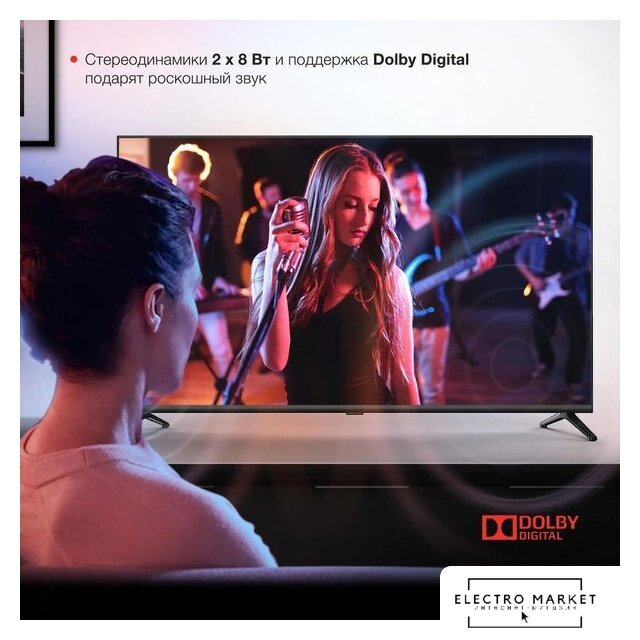 43" 1920x1080 (Full HD), матрица VA, частота матрицы 50 Гц, Smart TV (Android), Wi-Fi
