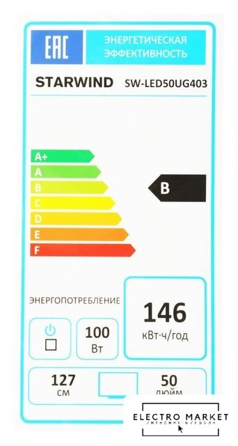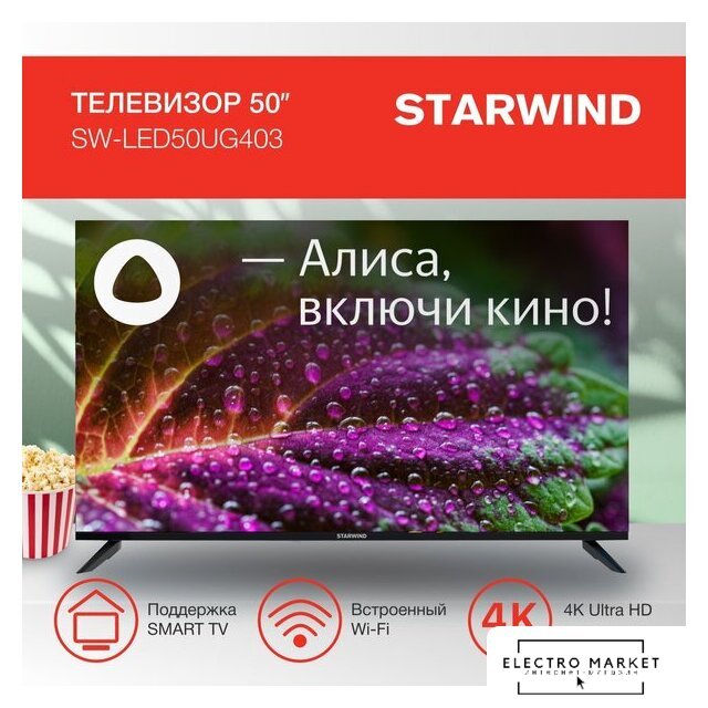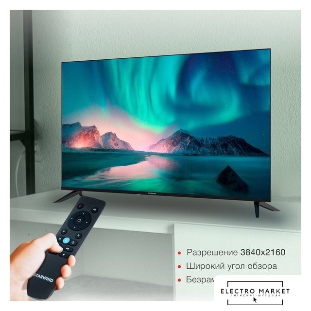 50" 3840x2160 (4K UHD), частота матрицы 60 Гц, Smart TV (Android), Wi-Fi