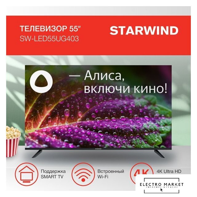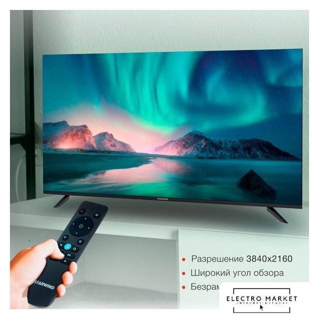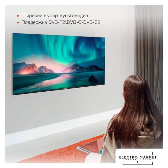 50" 3840x2160 (4K UHD), частота матрицы 60 Гц, Smart TV (Android), Wi-Fi