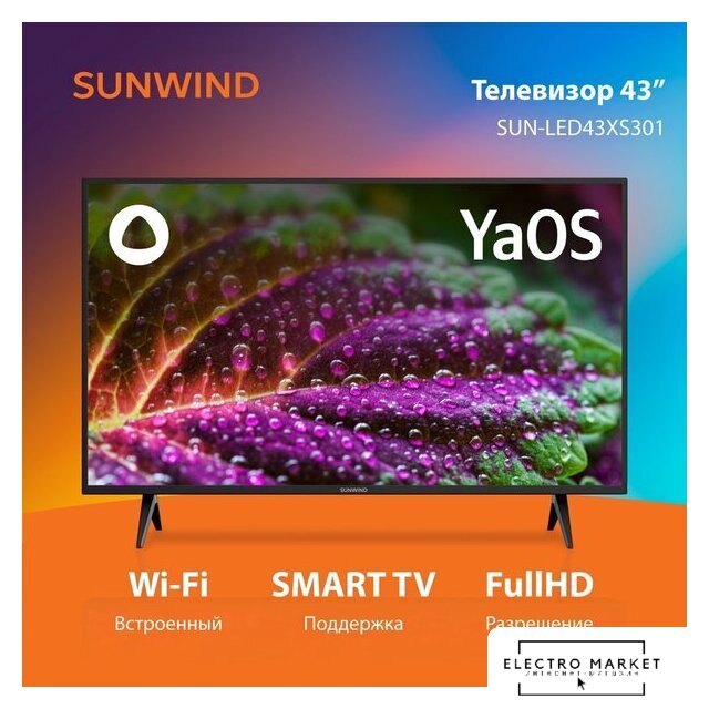 50" 3840x2160 (4K UHD), матрица VA, частота матрицы 60 Гц, Smart TV (YaOS), Wi-Fi, смарт пульт