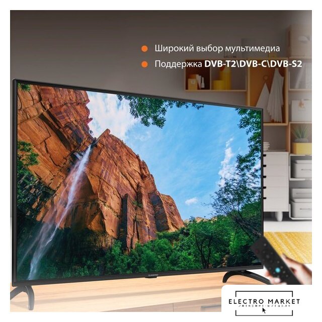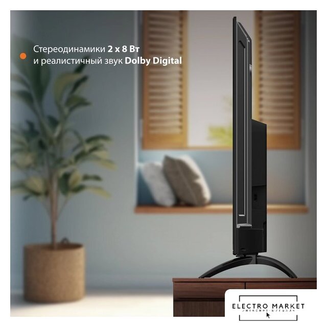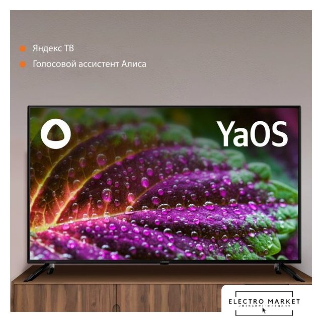 43" 3840x2160 (4K UHD), матрица VA, частота матрицы 60 Гц, Smart TV (Яндекс.ТВ), Wi-Fi, смарт пульт
