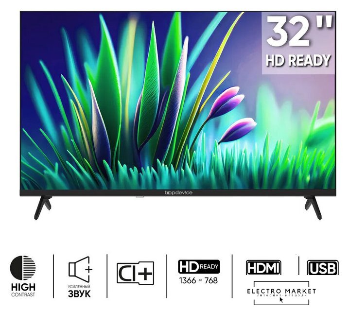 32" 1366x768 (HD), частота матрицы 60 Гц, Smart TV (Android), AirPlay, Wi-Fi