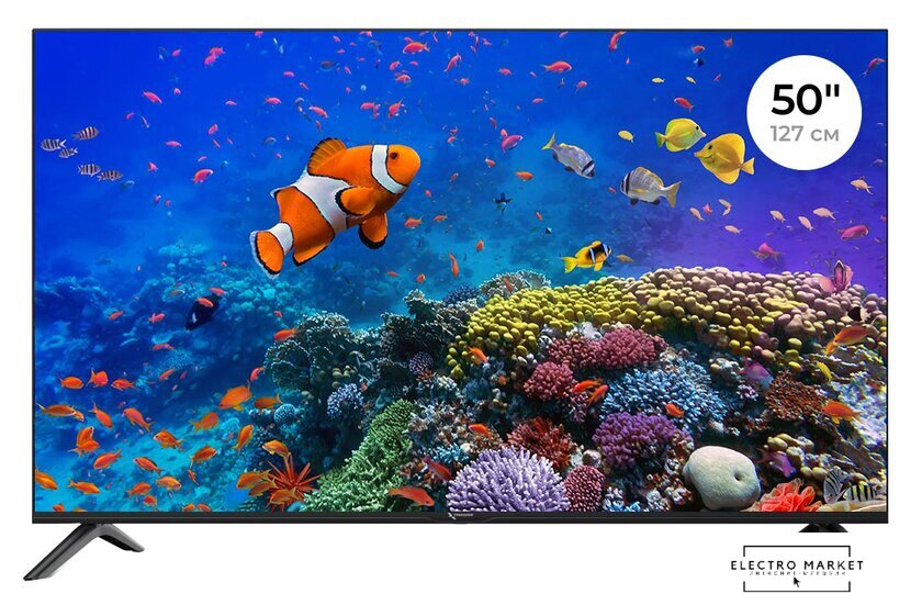 50" 3840x2160 (4K UHD), частота матрицы 60 Гц, Smart TV (Android), HDR10, Wi-Fi, смарт пульт